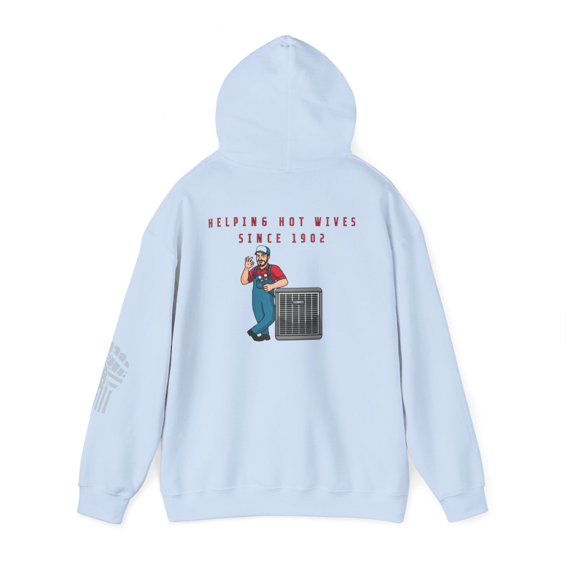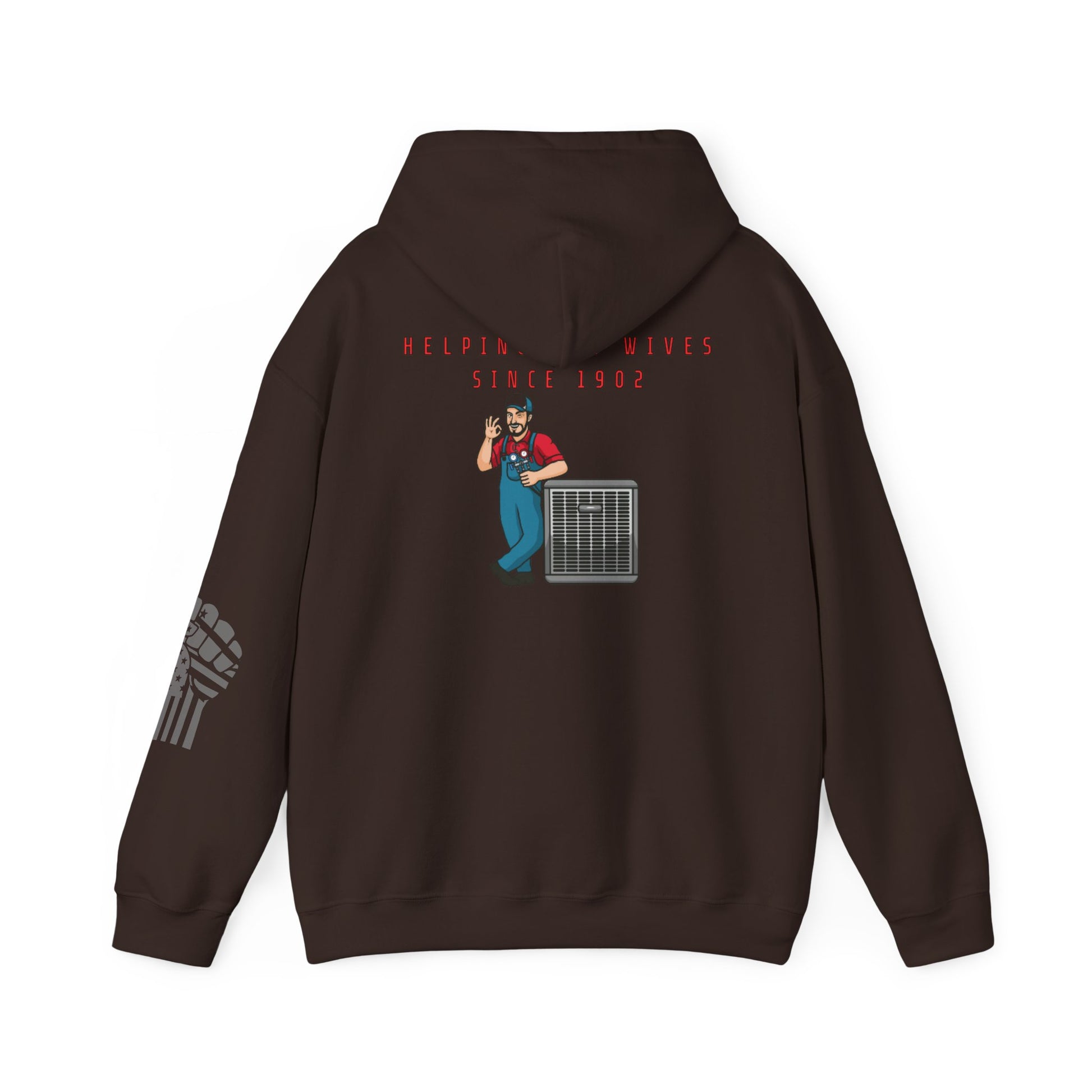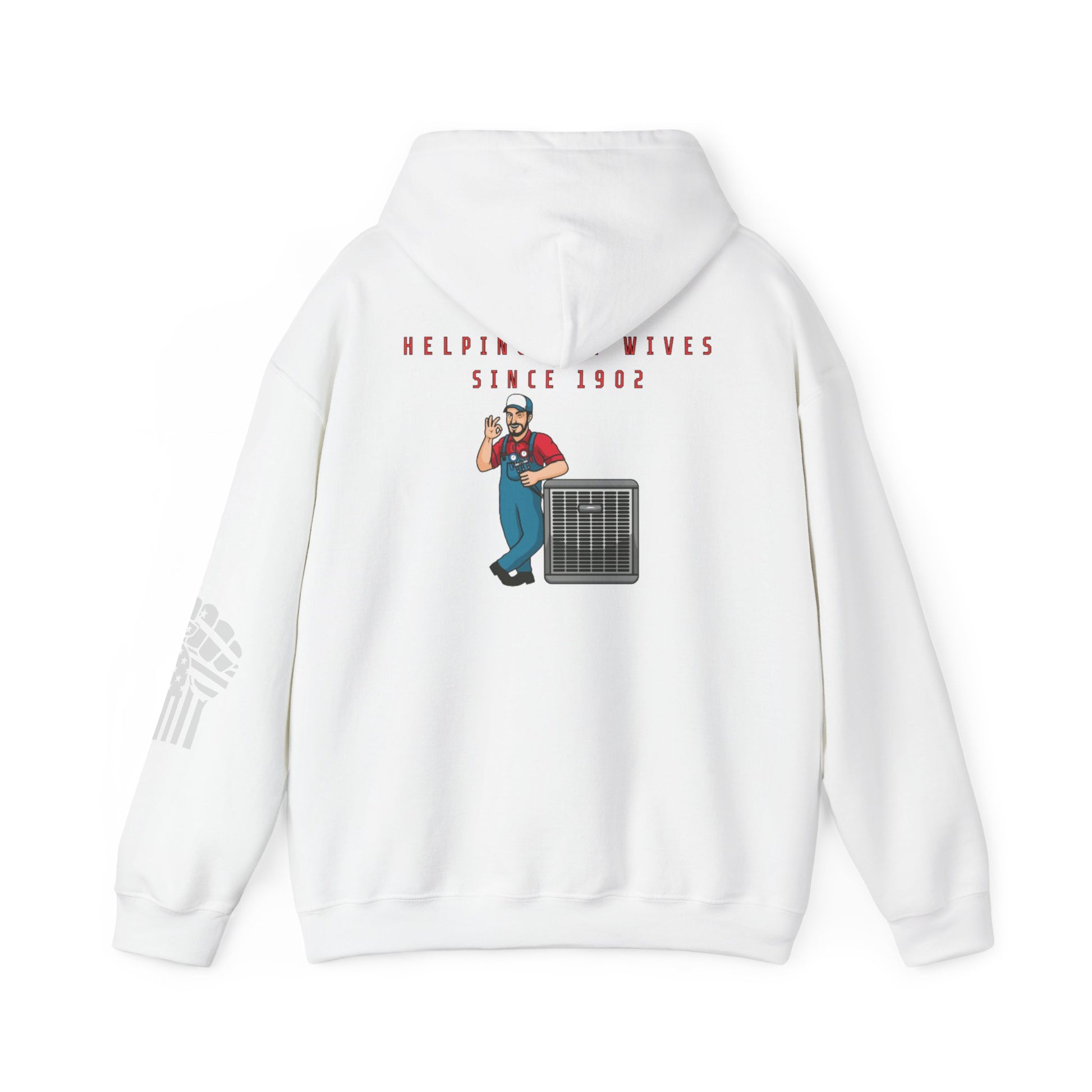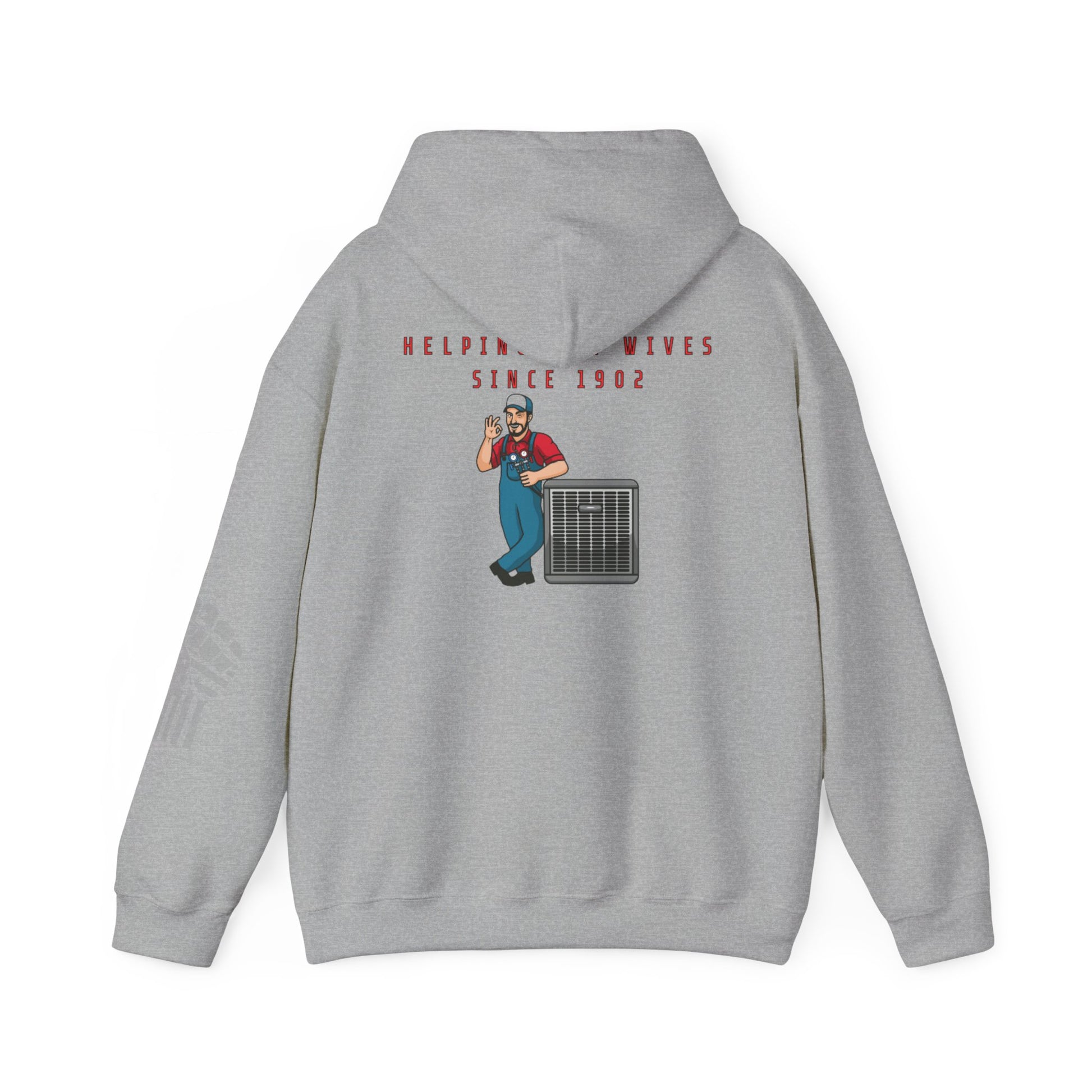 HVAC Humor Hoodie, Unisex Funny Sweatshirt, HVAC Tech Gift, Helping Wives Since 1902, Home Repair Humor